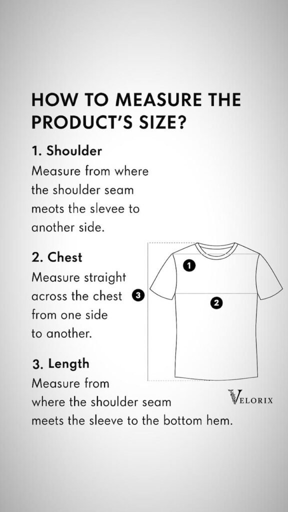 All Velorix T-shirts are made with premium 320GSM cotton and designed for a relaxed, oversized fit. Use the guide below to pick your size confidently.